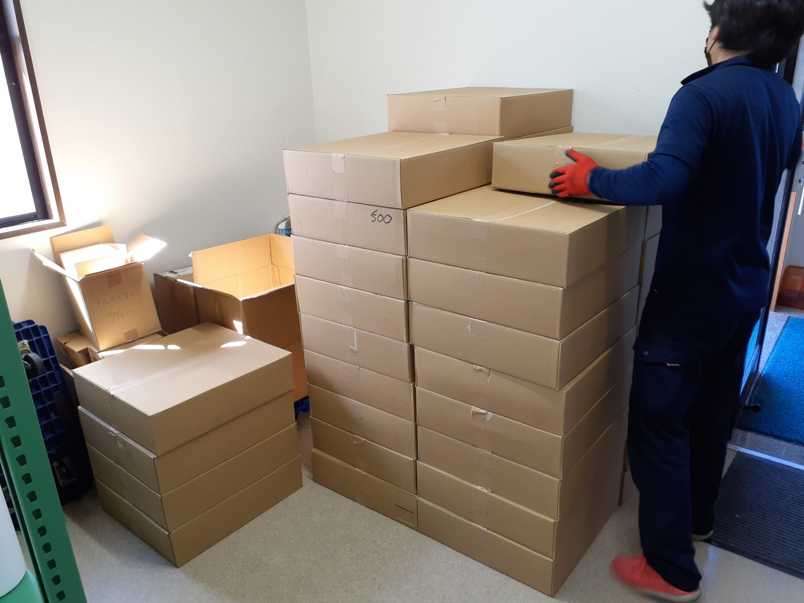 納品が完了すると、待ってました!といわんばかりに軽作業担当の方々が、段ボールに飛びつきます。まるでデパートのバーゲンセールのごとく(笑)