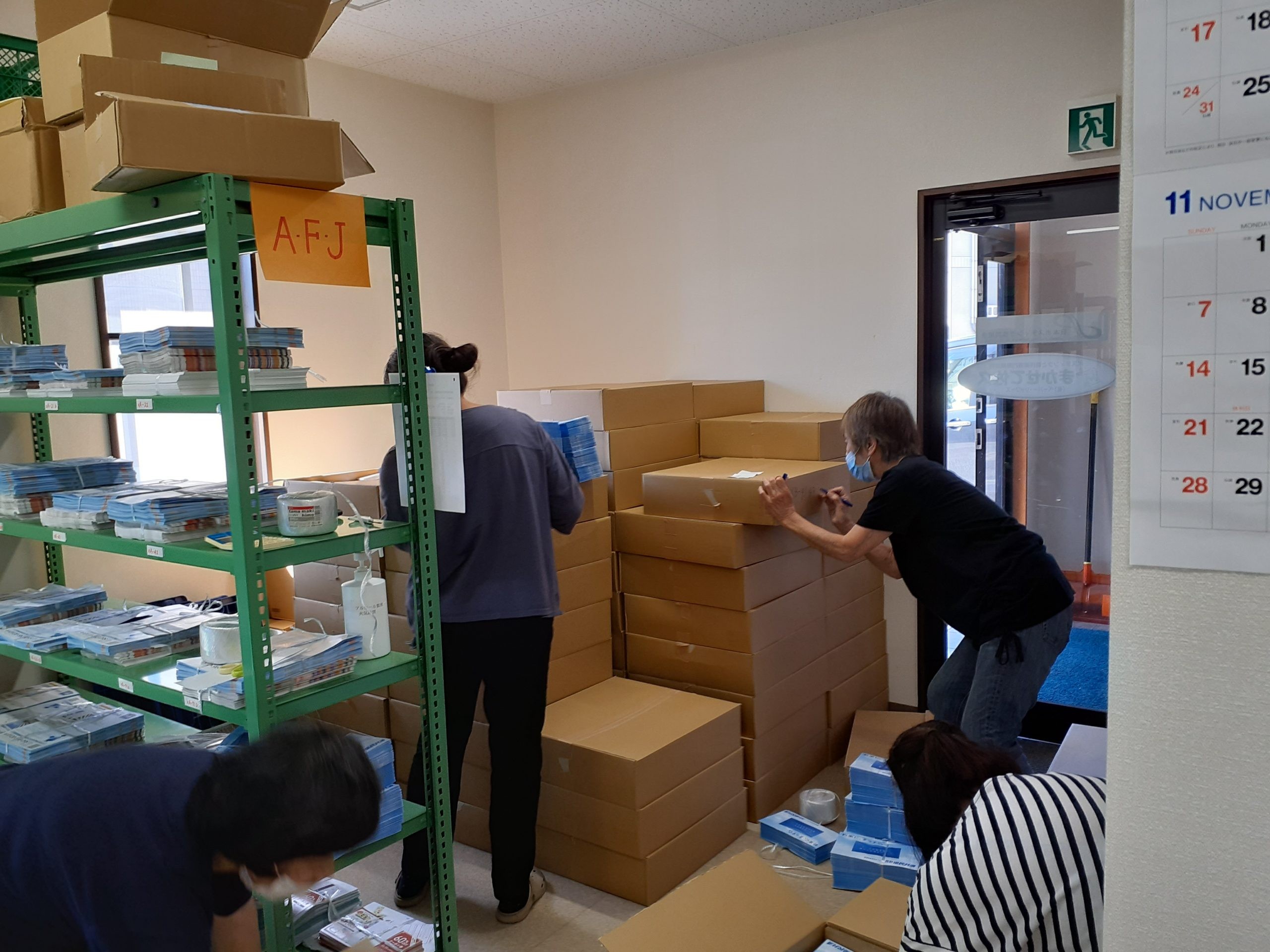 「本日の目標:時間内に仕分け作業終わらせたいと思います!出来上がった物はエリアごと、数字の若い順にまとめて並べてください!数え間違いのないように、丁寧に作業してくださ~い!!」との指示に、