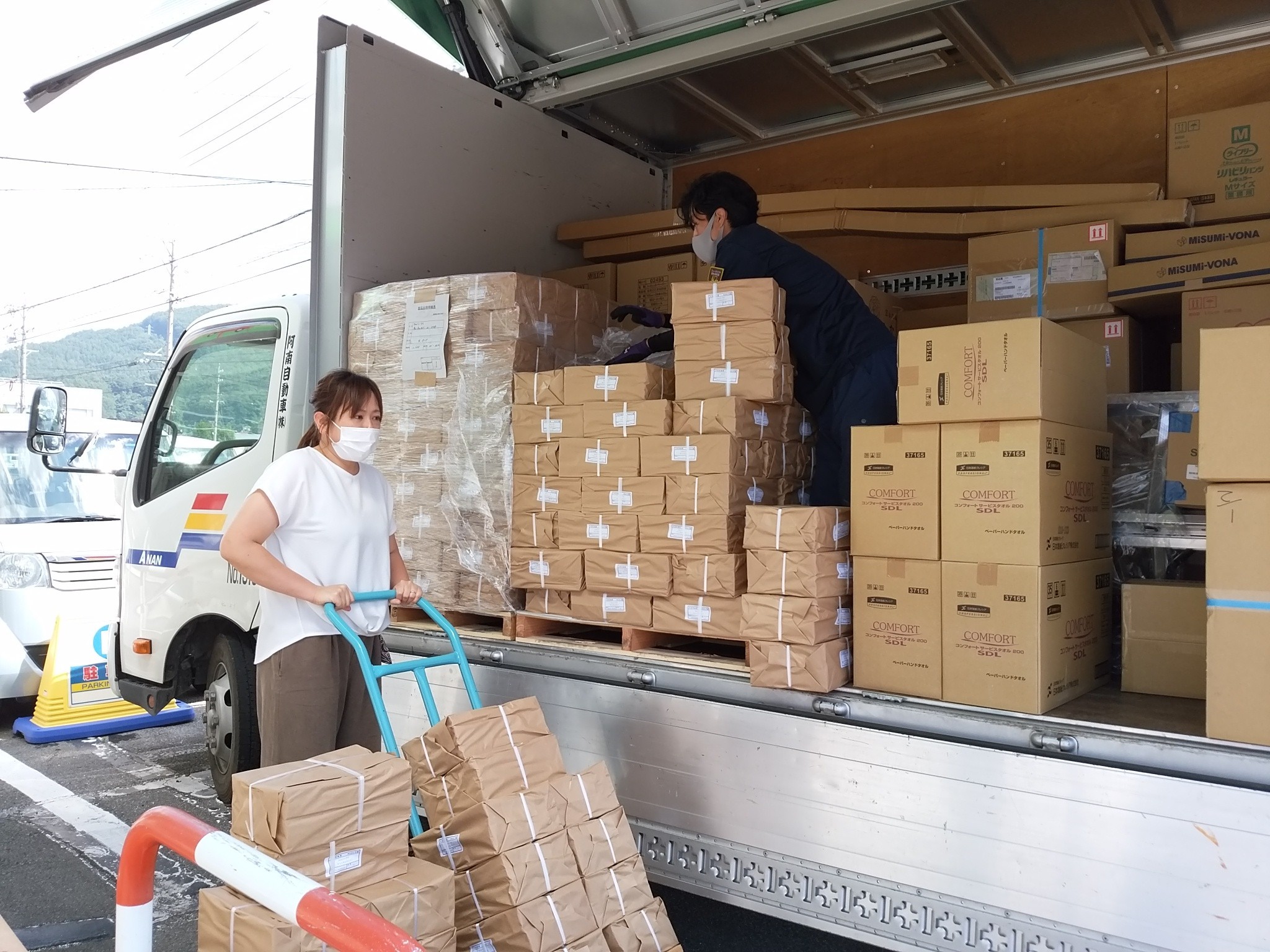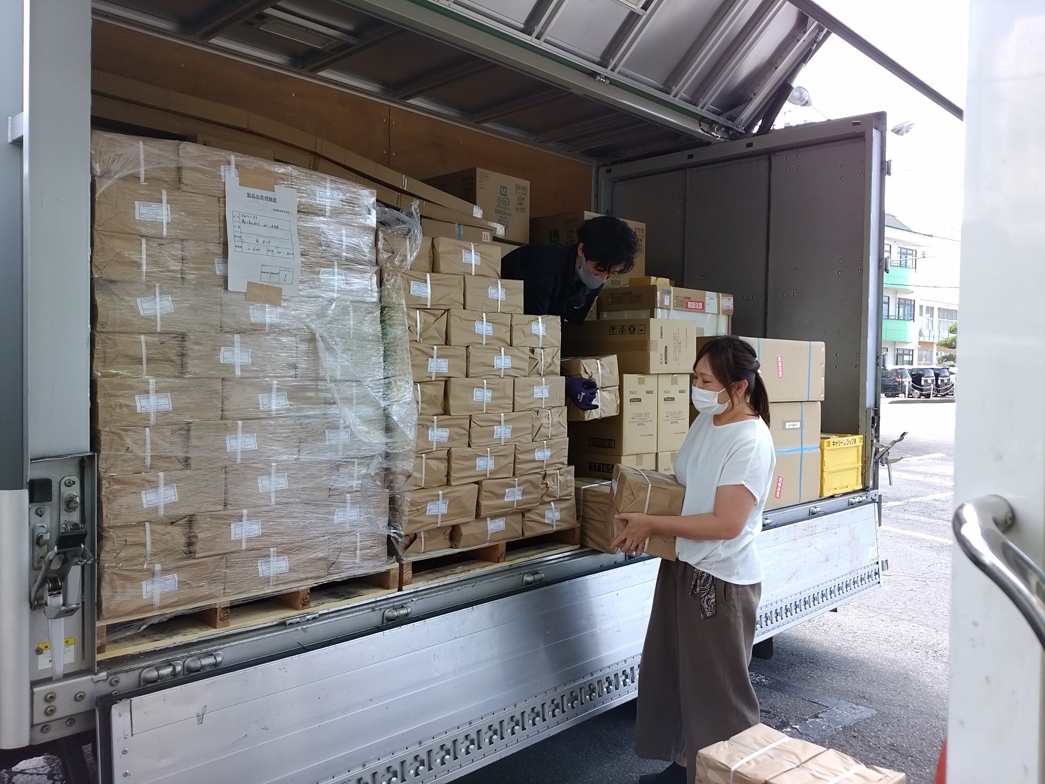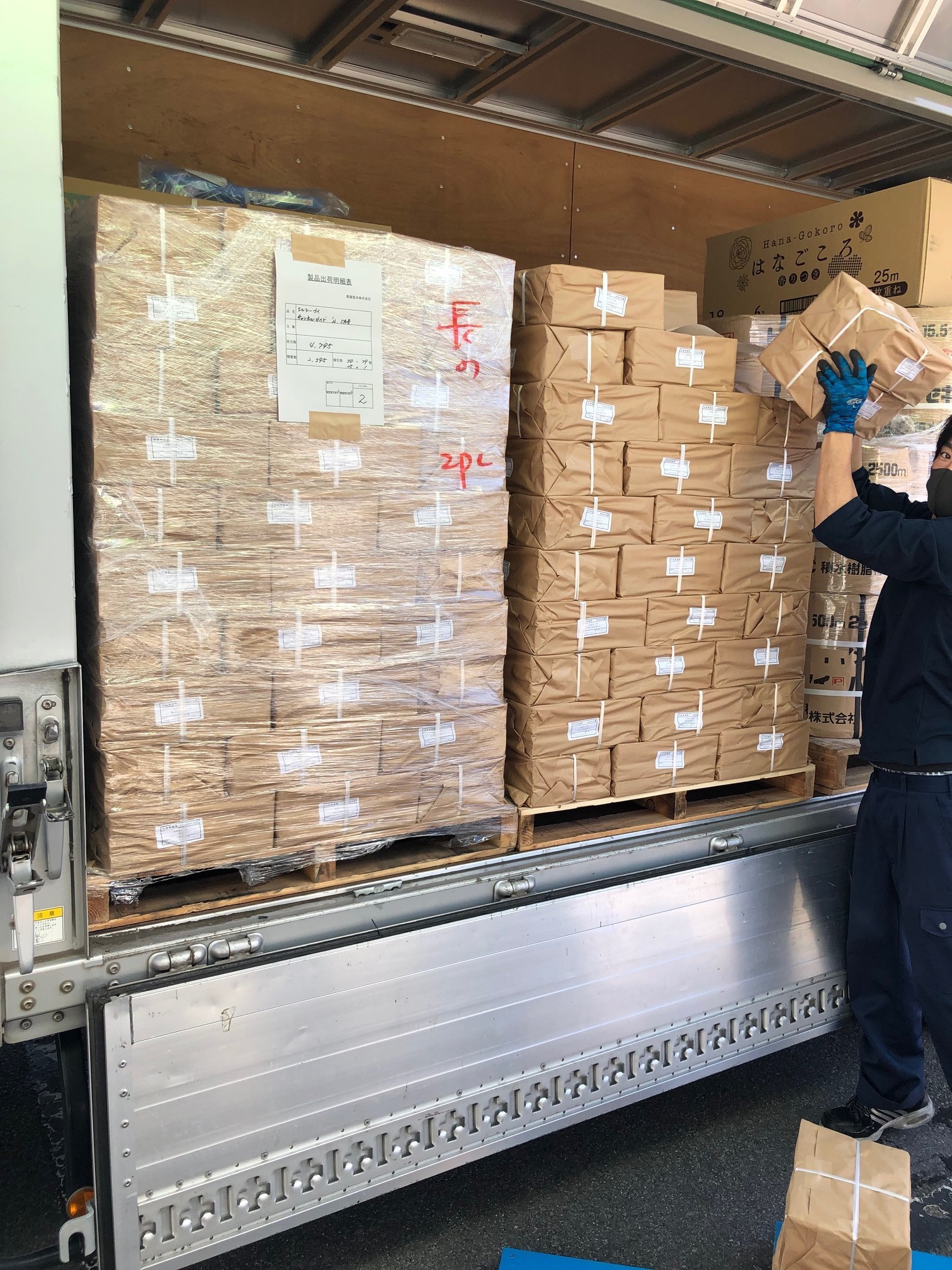 写真は先月末の納品時のものです。大量の荷物を汗をカキカキΣ(゚Д゚;≡;゚д゚)せっせと運びます。