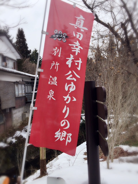 温泉街を見てみるとここにも真田の旗が!