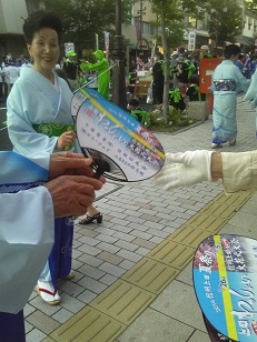 そこで、去年に引き続いて「うちわ」の配布を行いました。