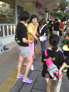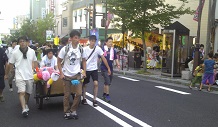 当日は35度を超す猛暑と祭りの熱気で汗だくになりながらの配布でした。