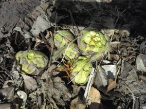 「ホントだね。よく見つけたね。」しばらく行くと今度は「目玉焼きのお花ある!」