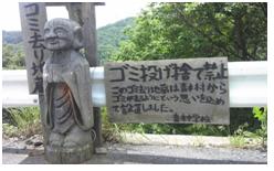 ②次に現れたのが、夜通れば不気味なゴミ去り地蔵?青木中学校生徒の渾身の作でしょうか?こんなお地蔵さんが立っていれば確かにゴミは捨てられませんね?