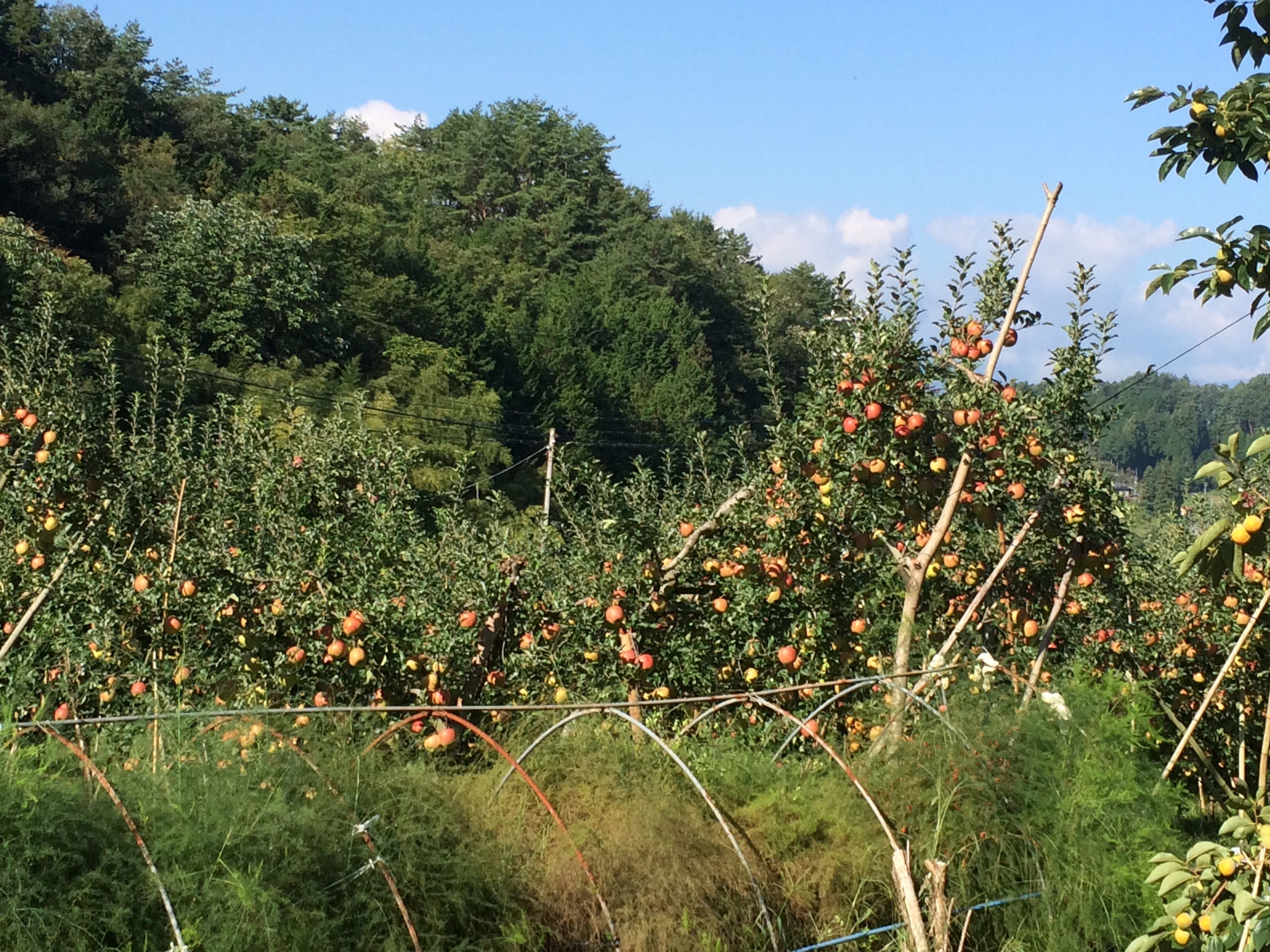 こんな橋を渡って山にどんどん入っていきます。途中からりんごやなしなどの観光農園が増えてきます。それも越えてどんどん登っていくと一軒の当社の秘密農園に辿り着きます。