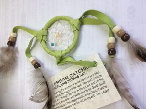 これは、夏より前でしたが、有給を使ってアメリカに旅行に行ってきた女子社員からのお土産。アメリカの先住民族の言い伝えにあるドリームキャッチャーというものです。社長!夢をつかんで!と社員から叱咤激励を受けている感じです。