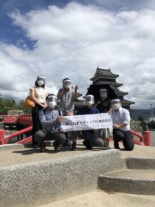 松本城にも行き、通りがかりの観光客の方にシャッターを切ってもらいました。私たちの格好を興味深く見ていましたが・・・。