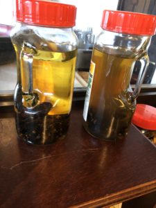スズメバチを生きたまま焼酎に入れて熟成したお酒を毎日すこしづつ呑むと、血行がよくなり、冬でも手や足の先まで暖かくなります。そうやって飲んでいる愛好家が何人かいて、そのルートからスズメバチを仕入れているようです。そして、その焼酎漬けのスズメバチの入った瓶を見せてくれました。