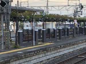ヒント;そうそう、ここのJRの駅には、ホームに本格的なぶどう園があります。