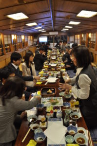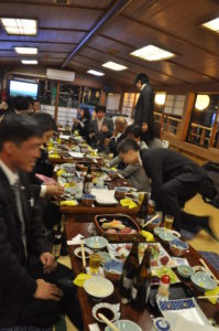←ある年には、隅田川の屋形船で宴会を開いたりしました。