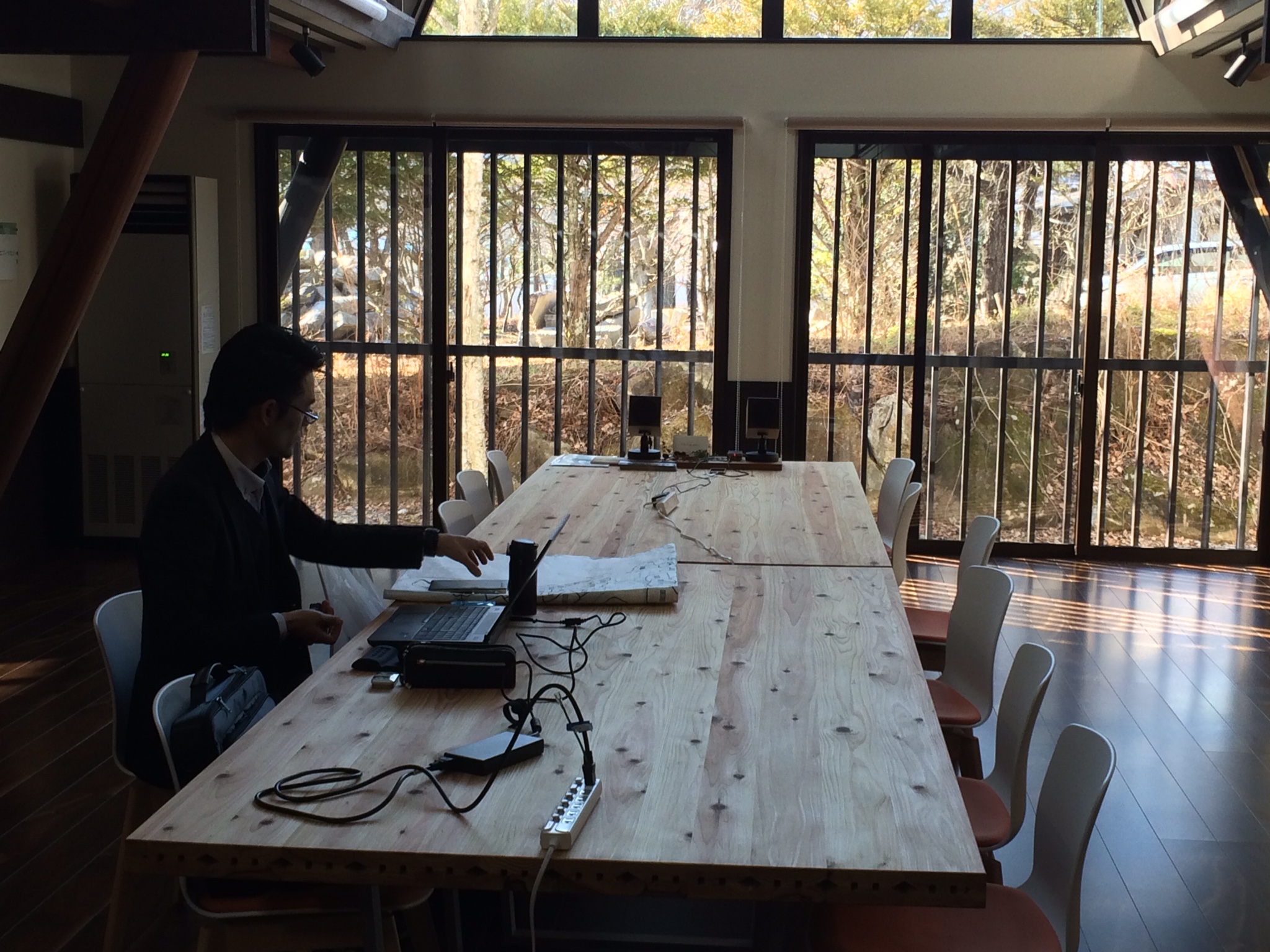 12月のある日、当社の会議が、この場所をお借りして初めて行われました。森の静寂の中で行う会議は、ディスカッションが盛んになり、頭の中が活性化します。