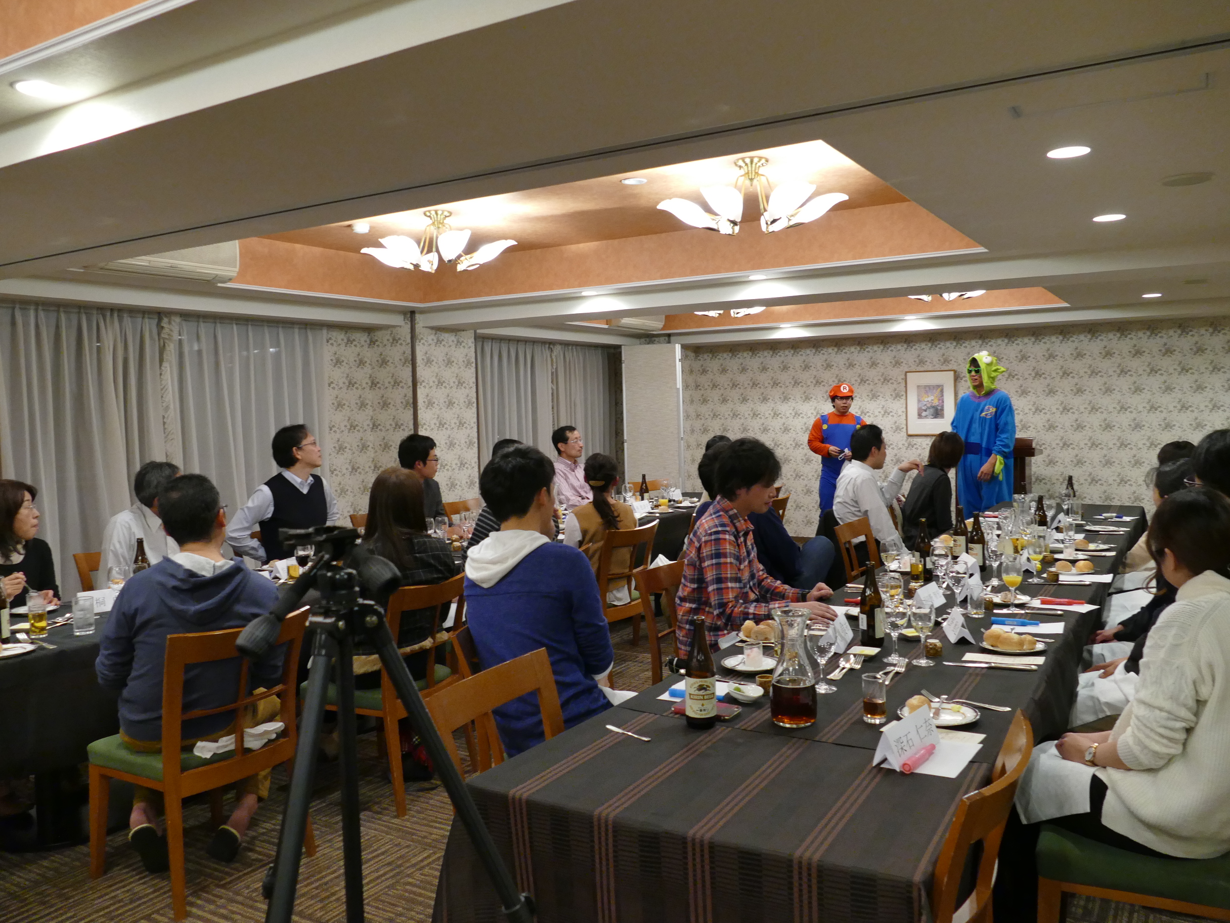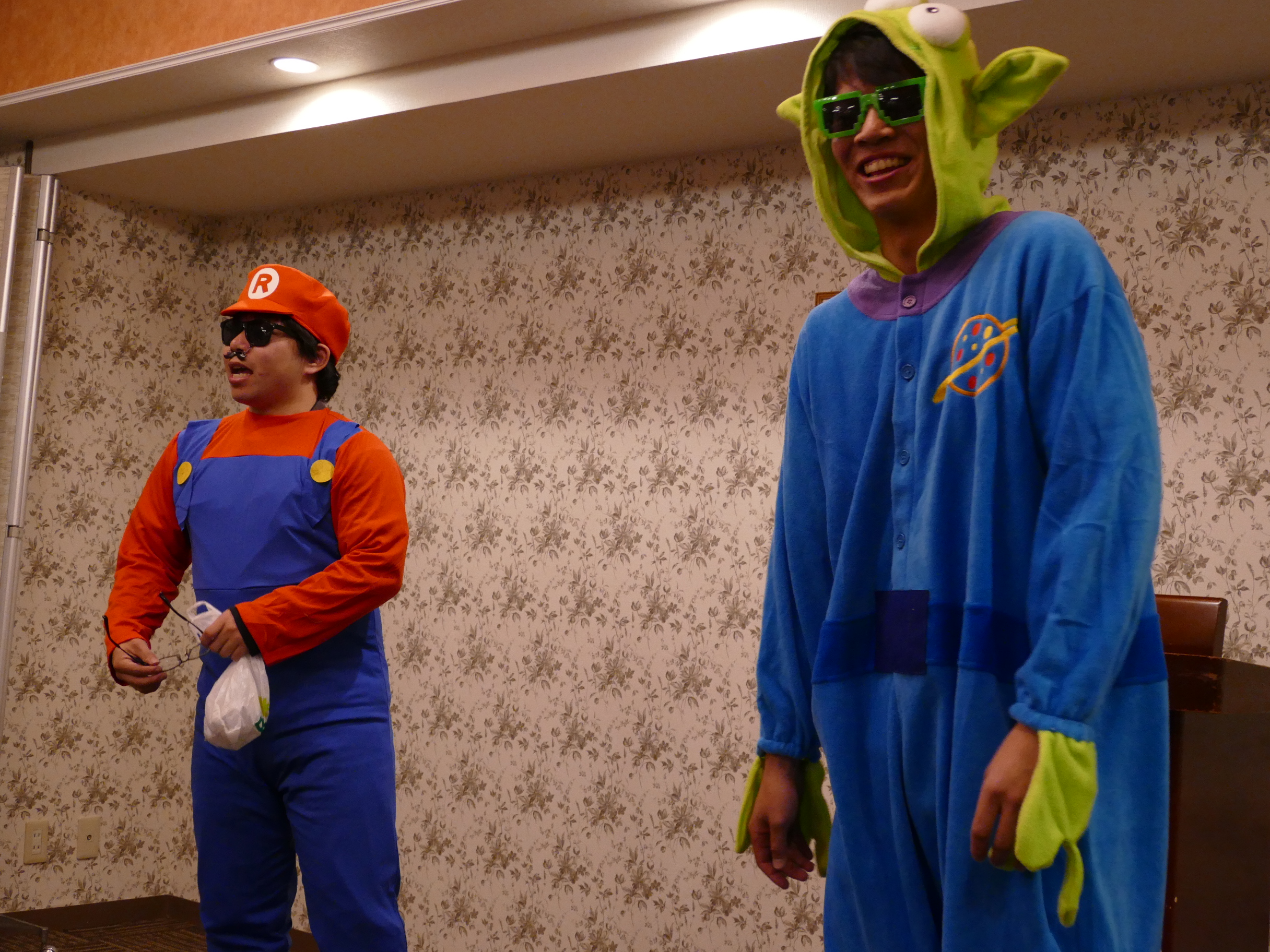 夜の宴会では、スーパーマリオとグリーンメンが突如出現して、ゲームをして去っていきました。