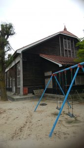 なんとも歴史を感じる校舎と、(多分)体育館です。